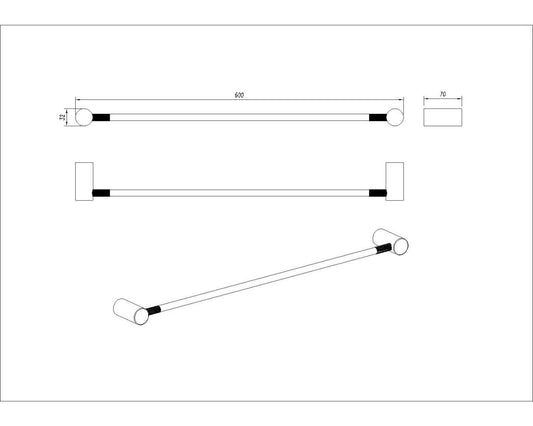 Caddence Single Towel Rail 600mm - Gunmetal