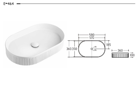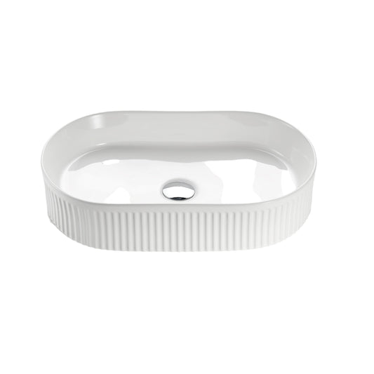 Oval Fluted Ceramic Counter Top Basin - Matte White