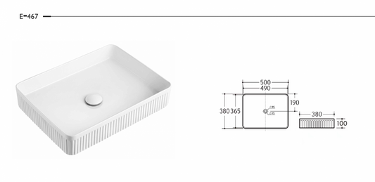 Rectangle Fluted Ceramic Counter Top Basin - Matte White