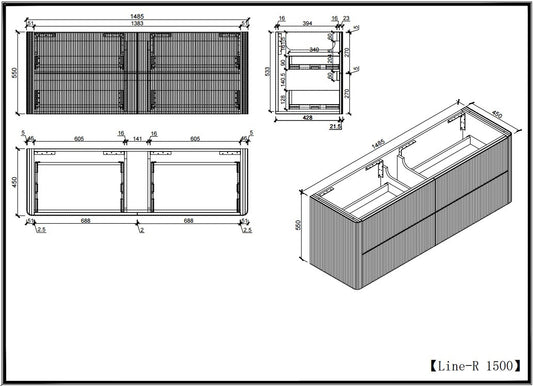 White PVC Freestanding Vanity 1480x450