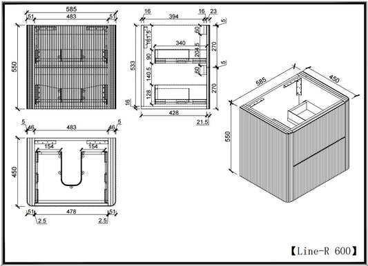 Slimline Curved Fluted Vanity 600mm - Matte White