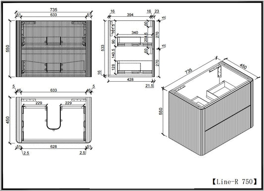 Slimline Curved Fluted Vanity 750mm - Matte Black