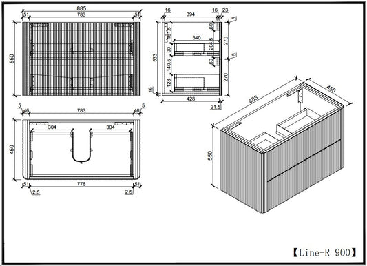 Slimline Curved Fluted Vanity 900mm - Matte White