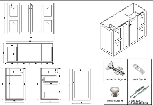 Shaker White Freestanding 1200mm Vanity