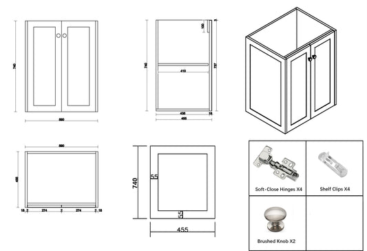 Shaker White Freestanding 600mm Vanity