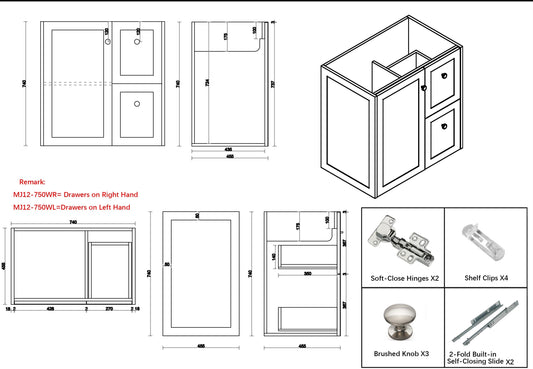 Shaker White Freestanding 750mm Vanity