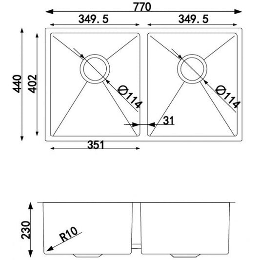 Stainless Steel Kitchen Sink with Double Bowl 770x450