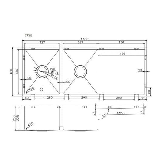 Otus Double Bowl & Drainer Sink 1180×480