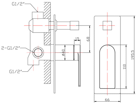 Ruki Wall Mixer with Diverter- Brushed Nickel