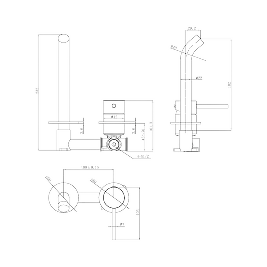 Otus Slimline SS Wall Basin Mixer Separate Back Plate Rough-in Body