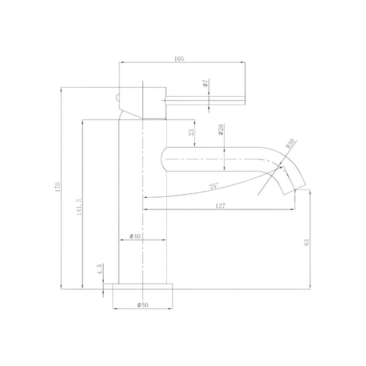 Otus Slimline Curved Spout Basin Mixer - Matte Black