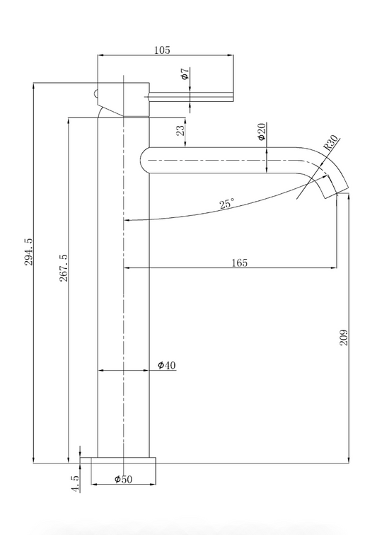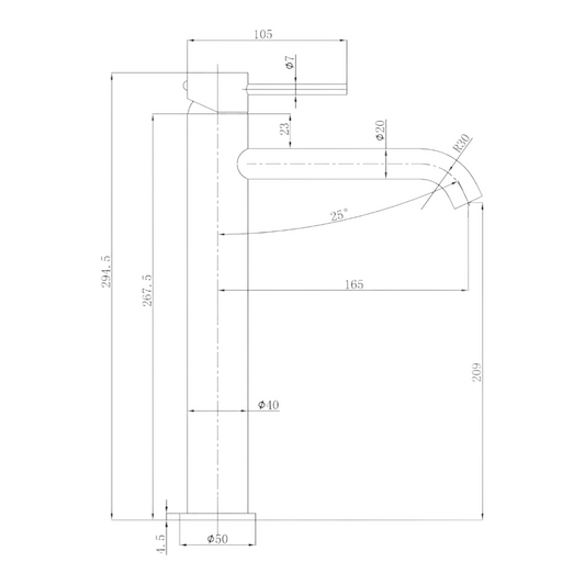 Otus Slimline Curved Spout Tall Basin Mixer - Stainless Steel