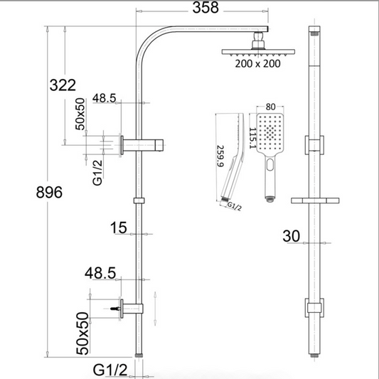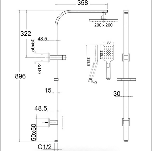 Eden Square Multi-function Shower Set - Brushed Gold