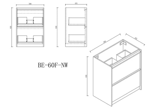 Rhea Fluted Freestanding Vanity 600mm – Natural Oak