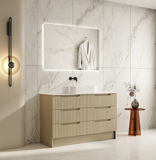 Rhea Fluted Freestanding Vanity 1200mm – Natural Oak