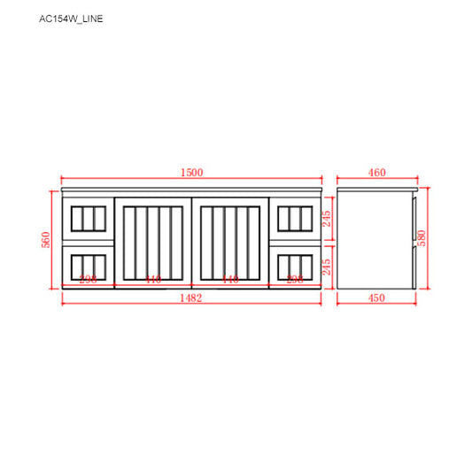 Acacia Shaker Wall Hung 1500mm Vanity - White