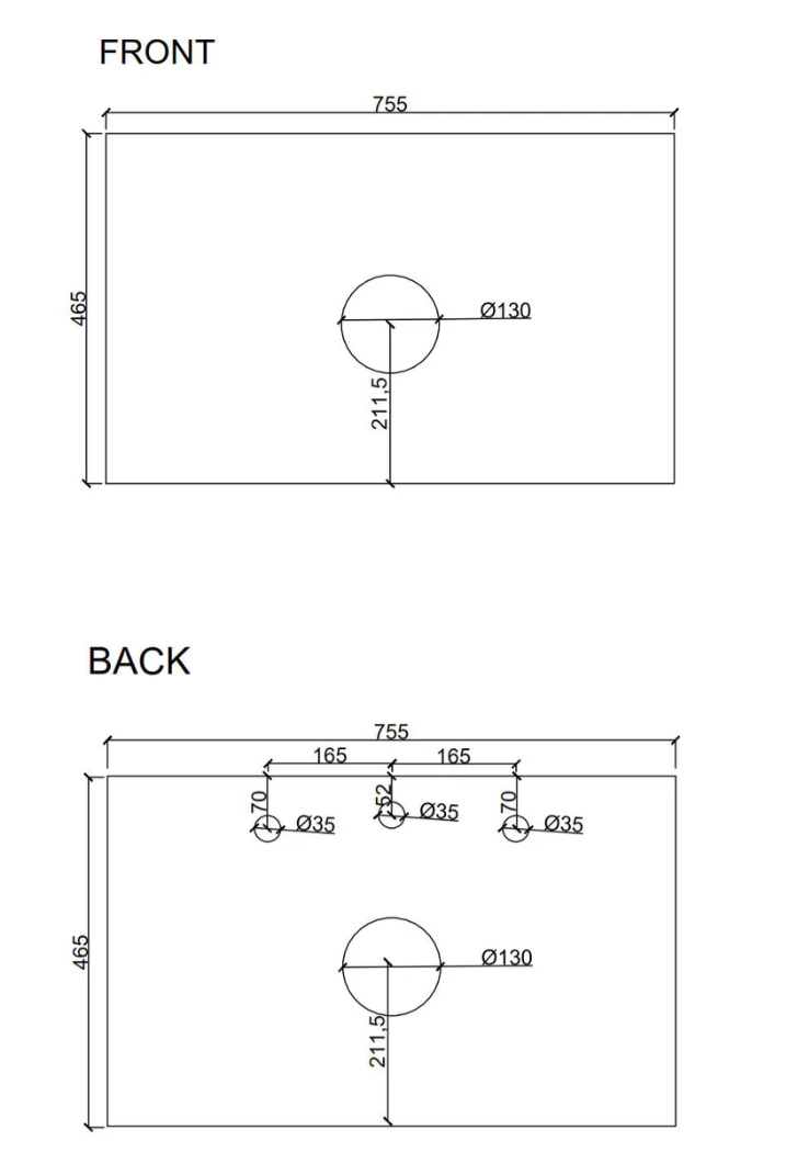 - 750mm Width x 455mm Deep x 500mm High